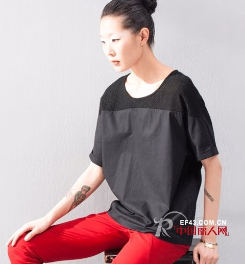 如果你的周末安排是去逛逛艺术区、博物馆、美术馆,那么选择有一点文艺范的、暗藏了心思的设计是有必要的。黑色的圆领宽松T恤不显山露水,不同材料的拼接使黑色有了过渡和层次感,如此低调的你,仍然不会成为被淹没的路人甲。