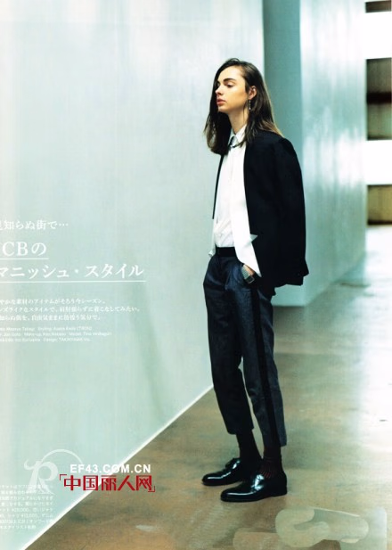 黑色西装配衬衫下身搭配一条休闲就九分裤,一双黑色亮皮鞋,这不就是一个男生的装扮吗?但是穿在女生身上却是那么的帅气。