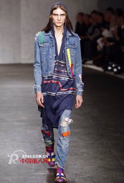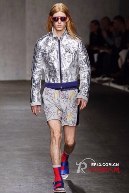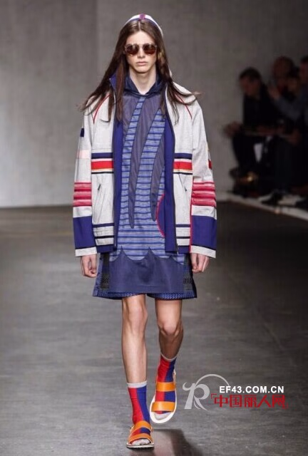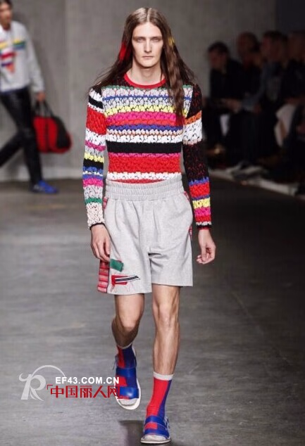 JamesLong丹宁2015春夏男装横条与色彩玩转视觉伦敦站James Long 丹宁在这次系列里被大量使用。横条纹与色彩区块将整个系列的明度拉高,宽松长版的上身与拳击短裤成了玩弄比例设计的轮廓主轴。彩色的针织绵毛料与牛仔面料的拼贴,再适当加入银色的锡箔材质,让整个系列看来创意加分。女性|mgsrchttpsom伦敦meng丹宁条纹色彩