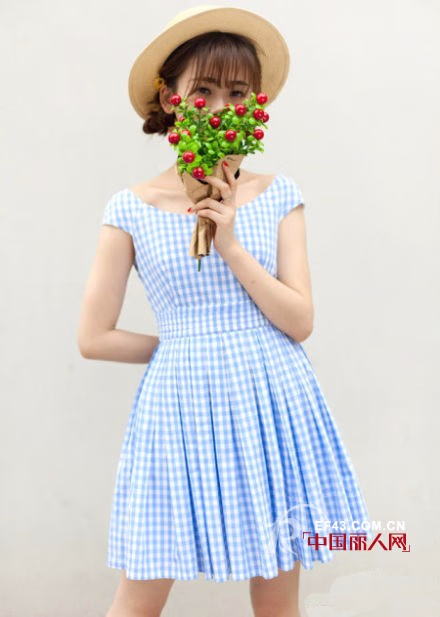 别以为只有长裙才能穿出女神范,连衣短裙也可以穿出清新女神范哦,经典格子连衣裙蓝白格子,像是自己的缝剪一样那么精致,简单的蓝白格子褶皱连衣短裙配上一顶遮阳帽,很田园的风格,夏季绝对吸睛。