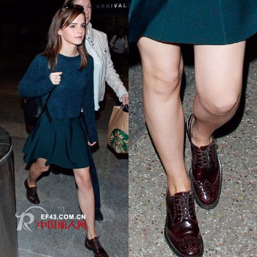艾玛·沃特森(Emma Watson)现身机场,身穿孔雀蓝针织衫搭配同色系半身褶裙,脚踩布洛克系带皮鞋展少女风魅力。