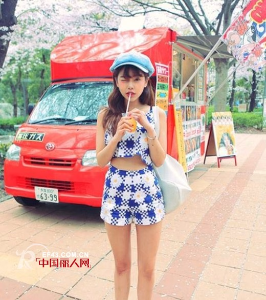 夏天怎可不露肤,你还被衣服包裹着吗?赶快给皮肤透透气吧!大色块的格子镶嵌着花朵图案的露脐套装,彰显修长双腿和性感小蛮腰,好身材就是要露出来。