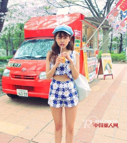 夏天怎可不露肤,你还被衣服包裹着吗?赶快给皮肤透透气吧!大色块的格子镶嵌着花朵图案的露脐套装,彰显修长双腿和性感小蛮腰,好身材就是要露出来。