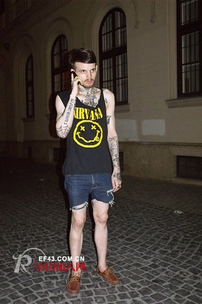 黑色背心作为百搭单品,添加了笑脸印花元素,让本是简单随意的黑色T恤变的个性十足,再搭配破洞牛仔短裤,卡其色休闲系带鞋,这样的组合成为夏日街头永远不会出错的美式休闲风格。