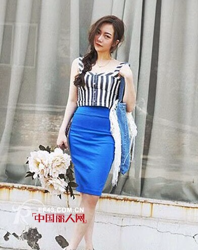 搭配示范:黑白条纹胸衣+宝蓝色高腰铅笔裙+白色厚底鞋+蓝色帆布挎包,黑白条纹胸衣耍起复古风情,搭配宝蓝色高腰铅笔裙大方得体,整体造型凸显曲线美,让好身材尽显,搭配蓝色帆布挎包多了份随性,非常有女人味的一款装扮,迷死街坊。