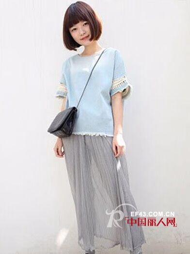 搭配示范:浅蓝色宽松上衣+灰色打底裤+雪纺透视灰色半身长裙+黑色绑带鞋+黑色皮质挎包,浅蓝色宽松上衣设计可爱舒适,让人感觉舒服,和灰色飘逸雪纺透视裙搭配,甜美又带有仙气,要耍小可爱让闺蜜男友惊喜,不妨尝试这款装扮,简洁百搭,让你气质升级。