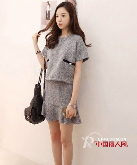 套装推荐:灰色小香风荷叶边裙装