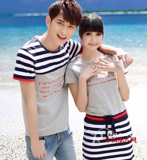 如果说,男生t恤衬衫搭配女生裙装还蕴含了诸多温柔婉转的变化,那么,两款设计几乎一模一样,只是尺寸大小有一些差别的情侣衫,则十成十地贯彻了“情侣”二字的用意,显得温情而又默契。