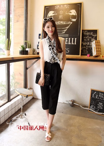 让下雨天不在感觉饭,让下雨天成为最美,最美的季节不要让下雨阻挡了你美的权利,下雨天也可以穿的美美的,白色雪纺上衣搭配一条黑色七分裤简约而又大方的装扮,配上一款黑色精致小包绝对赞。