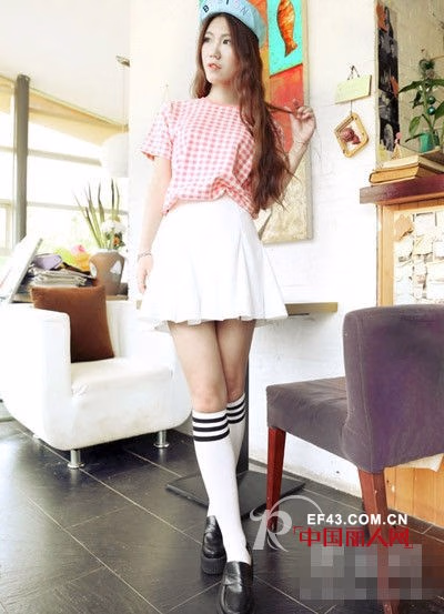 很有运动风的这款黑白条纹高筒袜绝对是日系妹子的最爱,不像丝袜那样过于性感,搭配粉色的格子衫和白色的短裙,让女生在阳光运动中夹着小性感。