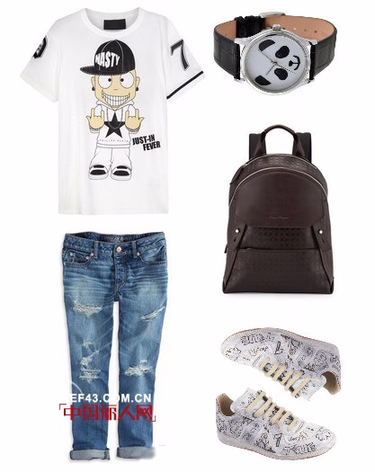 阳光男,青春阳光的男生给人一种活力感,简单的白色T恤,可爱图案印花,配上一条宽松破都牛仔裤,微卷的裤脚会显得更加的潮,一块表,一个双胞,一双休闲板鞋,这样的阳光潮男,女生们怎能不爱呢?