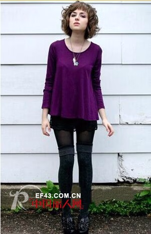 时尚混搭中筒袜用一个最简单的单品搭出属于自己的风味,是最能看出一个人性格和品位的元素。全身利用上下多层次的搭配术,虽然没有给人更惊艳的感觉,但是普通之中也是有特色和亮点的。神深紫色上衣、黑色蕾丝拼接下摆、黑丝袜打底在加上多色的长筒过膝袜,一个素雅少女的形象就脱颖而出!