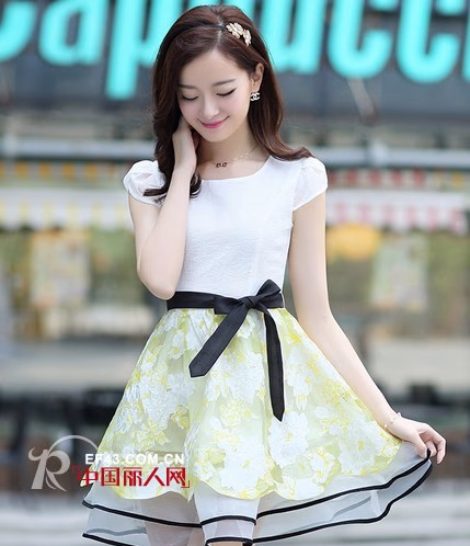那些淡雅的花朵图案提升了裙子的浪漫度,撞色系带和包边则凸显视觉震撼力。花苞袖和喇叭形下摆遥相呼应,突出整体的和谐。立体剪裁遮肉塑形,高腰款还很显高哦。