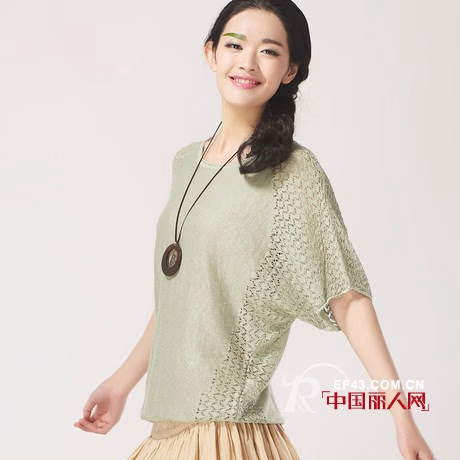 这件蝙蝠衫中袖的设计,舒适得面料,十分的柔和亲肤。宽松的版型,适合各类型的女生。清爽素雅的颜色,衬托得女生肤色白皙,更加的减龄青春。镂空的手袖设计,为整体增添了时尚感。搭配一条米色的褶皱短裙,甜美灵动。