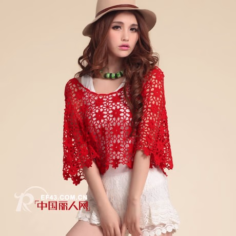 大红的色彩,激情奔放,让人感觉到火焰般的热烈。镂空的针织设计,迎合了新一代女性们对时尚的需求。精致的绣花装饰,分外迷人。搭配的白色吊带裙,淑女婉约。让人一见钟情。