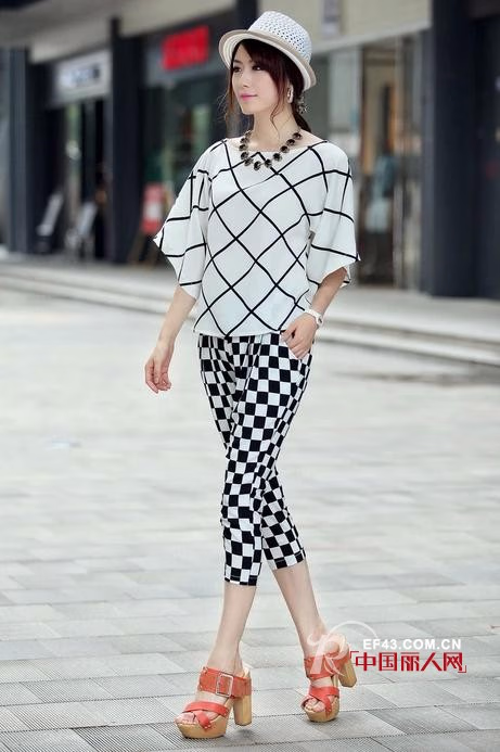 黑白格子套装,十足的英伦风范,夏天短款比较泛滥,但是真正的清凉不会在意那点长度,七分裤也有它的立足之地。方方正正的格子还是黑白最有感觉,大格子清爽,小格子规矩,上下搭配却有明晰的方向,修身而又休闲。就是这样简单的素雅却也不失女人的干练清爽。