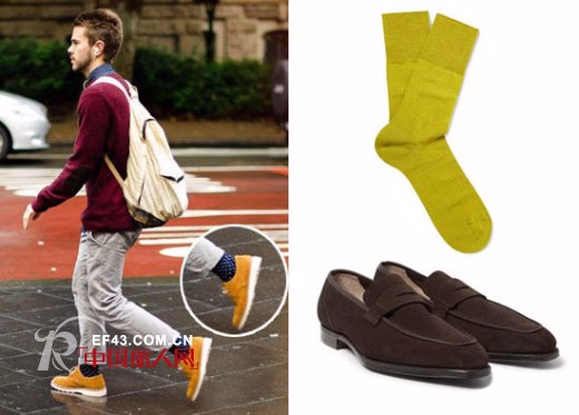 你可以大胆选择一些荧光色的东西,掌握撞色技巧就完全不用担心如何来搭鞋子了,图案方面,最近流行的民族花纹或者波点,条纹,但是个人认为尽量不要挑选带有醒目品牌logo的袜子,型男们也可以选择一些中性色系。另外,露袜的关键还在于一双干净漂亮的鞋,复古的牛津鞋最百搭。