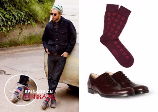 纵观现在对于鞋子的细节街拍不难发现,鞋子已经不在是唯一主角,而脚踝处露出的千奇百怪的袜子已经迅速占领了这个主角地位,它们总是出尽风头,极容易抓住人们的眼球目光,撞色、波点、条纹、民族....袜子的风格也开始变得多元素起来,搭配上一双适合的鞋子,卷起裤脚,彻底的去做一个骚包男吧,如果你不想过于张扬和招摇,纯色袜子是你最好的选择,至于色彩么,就根据你当日的心情来决定了。