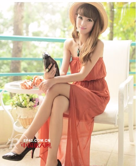 飘逸灵动感抹胸裙,抢眼橙色让你瞬间靓丽动人 ,性感开衩大秀纤细美腿,很有女神feel,黑色高跟鞋搭配,展现出高贵冷艳气质美。