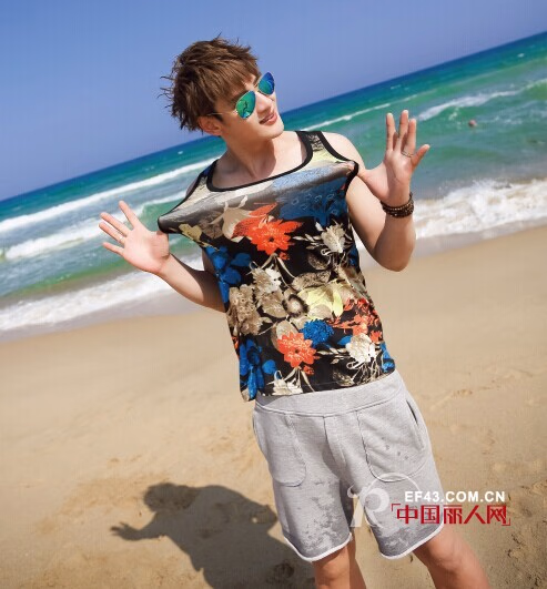 似乎每到春暖花开,男装就开始走“装嫩”路线,让很多传统人士可望而不可及。夏日背心星空休闲款,搭配灰色休闲短裤,时尚张扬。穿衣之道:这种风格的海滩装似乎比较适合个性、前卫的男士。