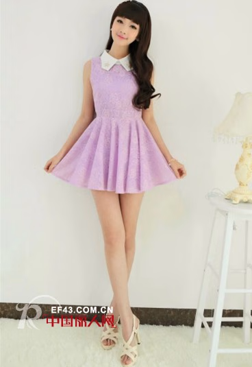 韩版镶钻娃娃领无袖紫色连衣蓬蓬蕾丝裙,干练成熟,简约又很大方,2014最流行的紫色,采用复合蕾丝的面料更显大牌质感。高腰的设计不言而喻,领子上的镶钻还可以拆卸,穿上它,瞬间就显得高挑纤瘦。