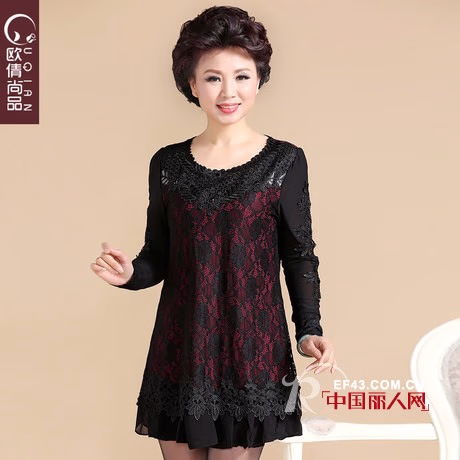 这件欧倩尚品的黑色镂空裙穿在五月正当时。黑色十分的减龄显瘦,微胖的妈妈穿上会有很好的显瘦效果。蕾丝精致的点缀,镂空丝袜款式,透着里面红色的雪纺,十分的吸睛,圆领大方优雅惹人爱。走到哪儿,人家都会夸赞,绝对的好衣品。