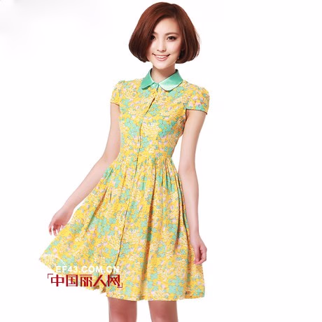 这样的连衣裙会让人想到漫山遍野的油菜花。黄色的花朵,绿色的叶子,都是那么的美。简约的短袖设计,经典的扣子,立领。平凡中透露着文艺,很有日系的风格。伞形的裙摆,褶皱的设计,搭配一双高跟鞋,魅力四射。