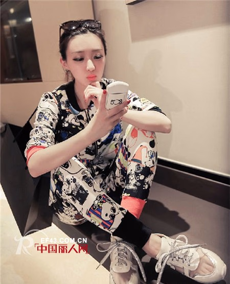 YY全身的史努比图案,穿着洋气舒适,可爱的感觉,拉链的门襟,上身更显随意自由。袖口和裤口两处的撞色设计相呼应,让YY的颜色和版型更加丰富,这个季节单穿刚刚好,一身休闲宽松的套装在既爬山的行进中一定是大家眼中的风景吧。