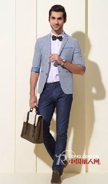 尽量买双排扣的西装,穿颜色对比鲜明的上装和裤子要比穿整套西装好,因为这类衣服纽扣的位置较低,显得身体不那么单薄。花色上最好选大宽格的西装,颜色以浅色系为主。西装的面料不宜用细条纹,否则会突出身材的缺点,格子图案是最佳选择。