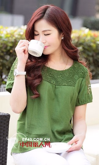 深绿色会令人想到森林、原野等充满清新氧气的地方,而且可以调整我们日渐浮躁和疲累的身心,使之获得释放。它也是充满希望和安全感的颜色,配以蕾丝的局部点缀更觉气质脱俗。
