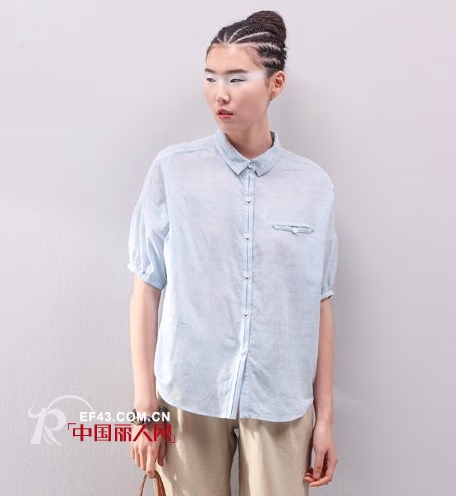 天蓝色的棉麻短袖衫,经典的款式,立领的设计,小米粒扣子的点缀,透露着复古的气息。不用任何色彩的点缀,舒适的手感,很是惹人爱。搭配一条卡其色的棉麻裤,大方时尚。将复古的中国风演绎的很是到位。