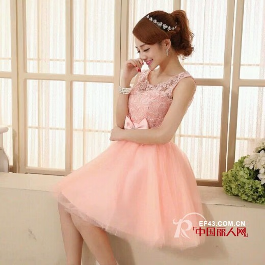 岁月是女人的天敌,爱美是女人的天性。一个爱美的女人会获得更好的异性缘。粉色的蕾丝裙修身的腰部曲线,勾勒了迷人的腰部曲线。肩部的蕾丝带完美地拼接。点缀出细腻的纹路。层层的裙摆中不忘加朵蝴揲结甜美的装饰。
