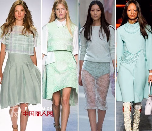 时尚秀场,巴黎,纽约,米兰各个时装周,各个大牌服装亮相,唯有这一抹薄荷绿最为让人心动,套裙款式设计,主颜色都是以薄荷绿为主,清新又自然,都是连衣裙的装扮这一个薄荷绿该火了。