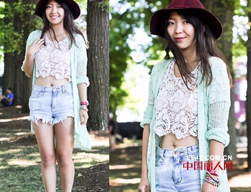 春季该露的都露了,你敢不敢挑战这样的款式呢?露脐装,透视装,配上牛仔短裤,上身搭配一件镂空长款针织开衫,很清新的风格,这样的潮人装扮瞬间点亮整个春夏。