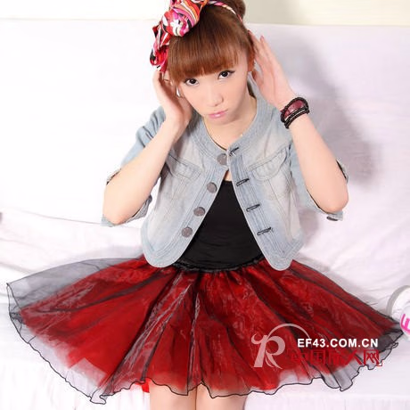 这件混搭双色玻璃纱的蓬蓬裙十分的惹人爱。底层耀眼的玫瑰色,上面的黑色美国透视网纱,性感又不失俏皮范儿。上面搭配的简约牛仔外套,圆领的设计,浅色系很是衬肤减龄。蓬蓬裙很能将长腿MM衬托的更像仙女哦。