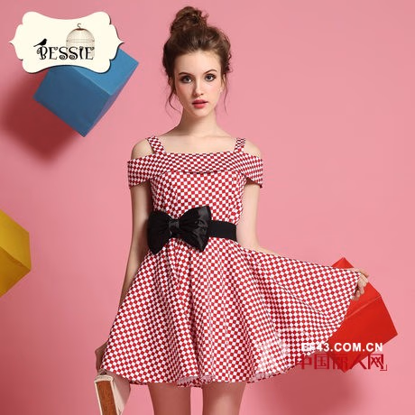这件露肩裙格子的设计,很有公主的感觉。整体修身的版型,舒适的面料,将女人塑造的很是青春俏皮。立刻减龄了几岁。大大的黑色蝴蝶结腰带,点亮了整体的色彩,十分惹人爱。伞形的裙摆更加的迷人多姿。
