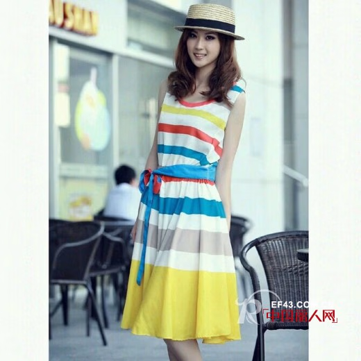 水蓝色的帽子很是衬肤,小编很是喜欢。帽子选的好也是很好搭配衣服的哦。这件条纹的彩虹裙波西米亚风格,收腰的款式,十分的舒适轻盈。搭配一条金属色的裙琏,会为整体增靓不少哦。微风掀起的裙角,让人十分的喜欢。