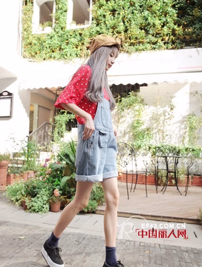 一定要有碎花才能是田园吗?看看这款波点的雪纺衫搭配背带的短裤,田园风的卷脚背带短裤是周末约会逛街的最好选择,轻松可爱又时尚,搭配宽松的韩版红色t恤,悠闲自在。这样的原宿风发型,你敢挑战吗?