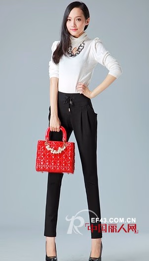 不规则的腰头带来了设计上的创新,视线看去都觉格外赏心悦目,轻松地增添穿衣品味和遮肉效果。裤腿上宽下窄,贴合腿型,因而无论胖瘦的MM都可以穿。将裤脚微挽配上高跟鞋立即充满御姐范。
