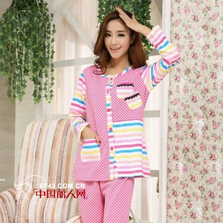 浅浅的粉色睡衣,黑色波点的点缀,俏皮青春。条纹的装饰,点亮了整体的色彩。小口袋的设计,简约大方,青春减龄。如此明媚阳光的装扮,会让你每天都有好心情。青春就应该好好珍惜,去尝试以前没穿过的风格,会让你大吃一惊。
