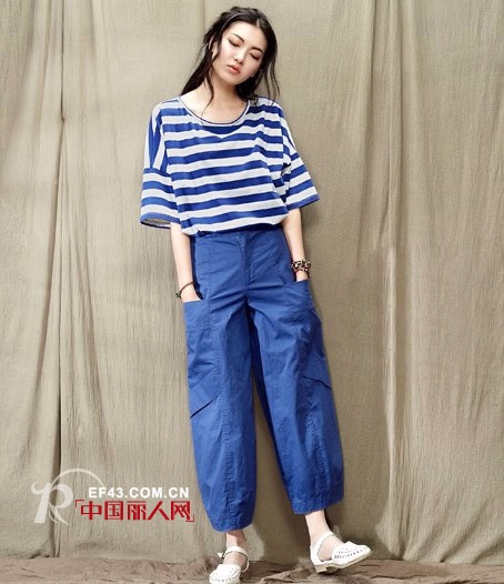 衣摆收进裤腰里显腿长。撞色彩条纹不似纯色的岁月静好也没有花朵的绚烂多姿,它就像这平凡的生活,简单又偶尔添点小色彩,搭配高腰宽松棉质长裤,过自由舒适的生活,平凡却不平庸。