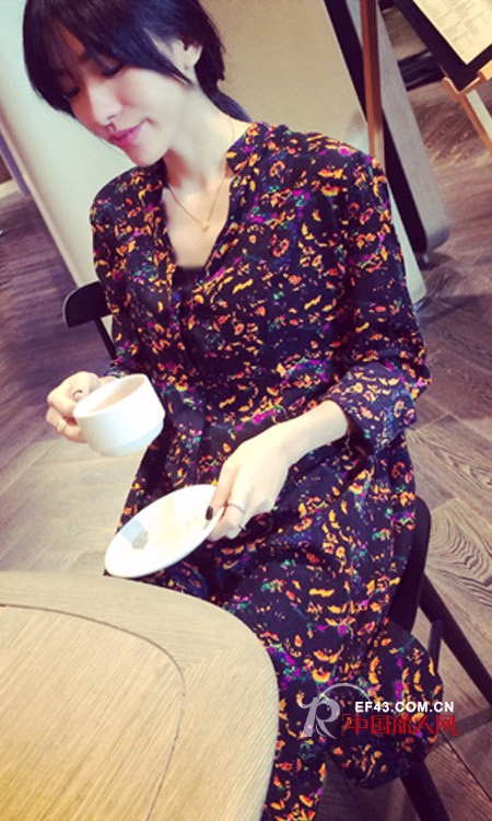 韩系的碎花连衣裙,不仅清新且充满田园风,更添一丝复古潮流,宝蓝色的底色印满亮色碎花,上半身还是纽扣式的设计呢,能显现出一点小小的性感,极赞的版型,上身效果是相当的夺人眼球,面料手感柔顺舒适,经典V领造型,用经典的款式打动人心。