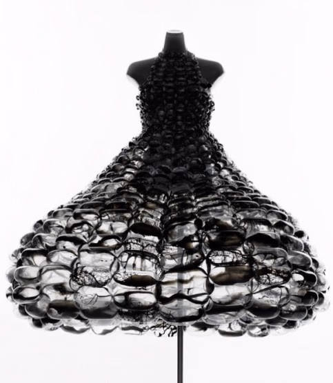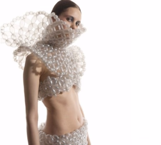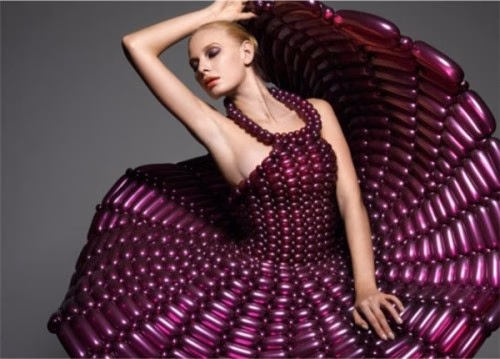 这是来自日本Daisy Balloon的气球艺术家细贝里枝(Rie Hosokai)作品。她用充气气球,这些看起来与布料毫不边的材料创造出了不同寻常的高级定制时装。这些精致的服装是艺术家用特制的气球“编织”方法制作的 ,无数的小气球最终组成一件易碎的,同时又具有可穿性和欣赏性的女装。