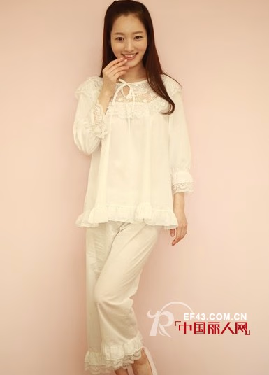热爱大自然的姑娘当然对花朵有着不同于常人的执着,田园风怎么就不能够出现在家居服上呢?清浅颜色的花朵,浪漫的荷叶边,抽绳系腰,穿出门去转一圈儿也一点都不会有问题。