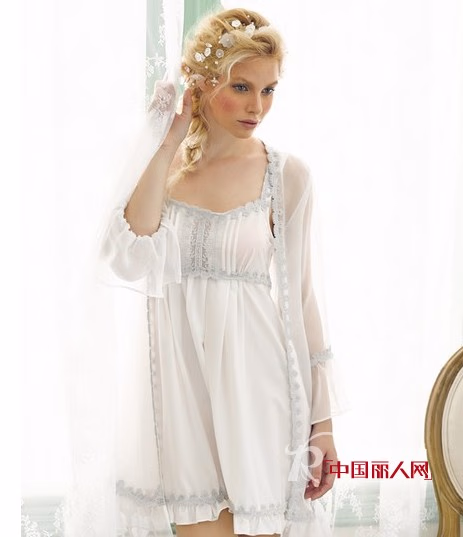 或许白色是一个劫数,无论是什么风格的故事里都逃不开它的影子。吊带裙的性感遇上纯白的懵懂便带出了些些无辜,轻薄半透的睡袍在白色的晕染下如云似雾若有似无,银色花边收拢的是不是一个逃不走的梦境?