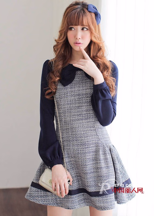 上身效果很有特色的视觉色彩,用时尚的撞色打造强烈的冲击力,复古的花呢面料,散发着典雅的气质。领口处的大蝴蝶结超吸睛,甜美外表下还隐藏着一颗充满幻想、童真的心。