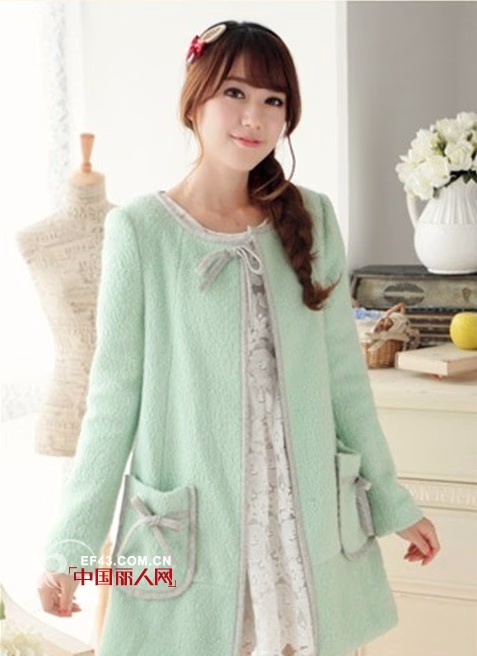 包边圆领简洁大气,展现出性感的锁骨和颈脖的线条,与包边同色系的蝴蝶结增添了甜美的气息。镶边的口袋和蝴蝶结装饰与领部设计相呼应,更显甜美可人贴心而实用。下摆的拼接设计,带着细腻的褶皱似裙摆的延伸优雅中不失甜美。优质的面料,时尚挺括的外形厚实保暖。