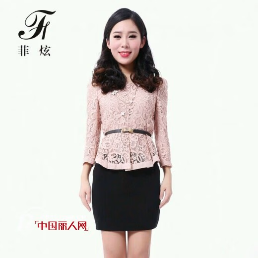 这件粉色的镂空蕾丝长袖衫舒适的面料,韩版的款式,很是衬肤减龄,时尚百搭。只有中年女性才能将蕾丝元素演绎的如此成熟有魅力。精致的拼接凸显出了服装的优质。黑色的腰带和下面黑色的包臀很是呼应,性感成熟。