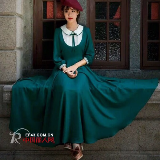 涂着鲜红色唇彩,戴着玫瑰色的礼帽,坐在大宅院的城脚下,仿佛在细细的品位一些美好的回忆。这件墨绿色的连衣裙超长款的设计,复古的款式,很有古香古色的特点。白色的娃娃领衬托的女人十分的精致优雅。