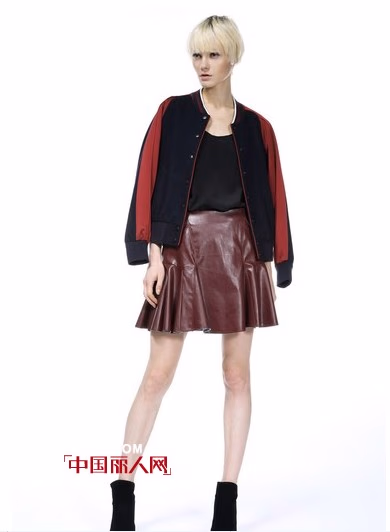 红棕色皮革又酷又潮,品味非凡,极显档次。在两侧打褶形成优雅的A字形又具恰到好处的女人味。短款包臀设计露出性感的双腿,配双中高筒裸靴就可气势十足地出现在任何场合。